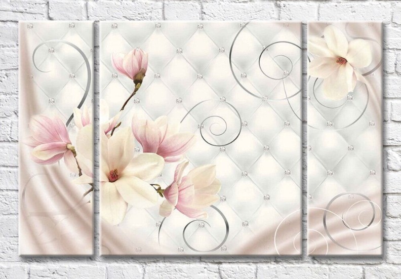 Картина Magic Color Magnolia flowers against the background of a coach tie with rhinestones (3565238)