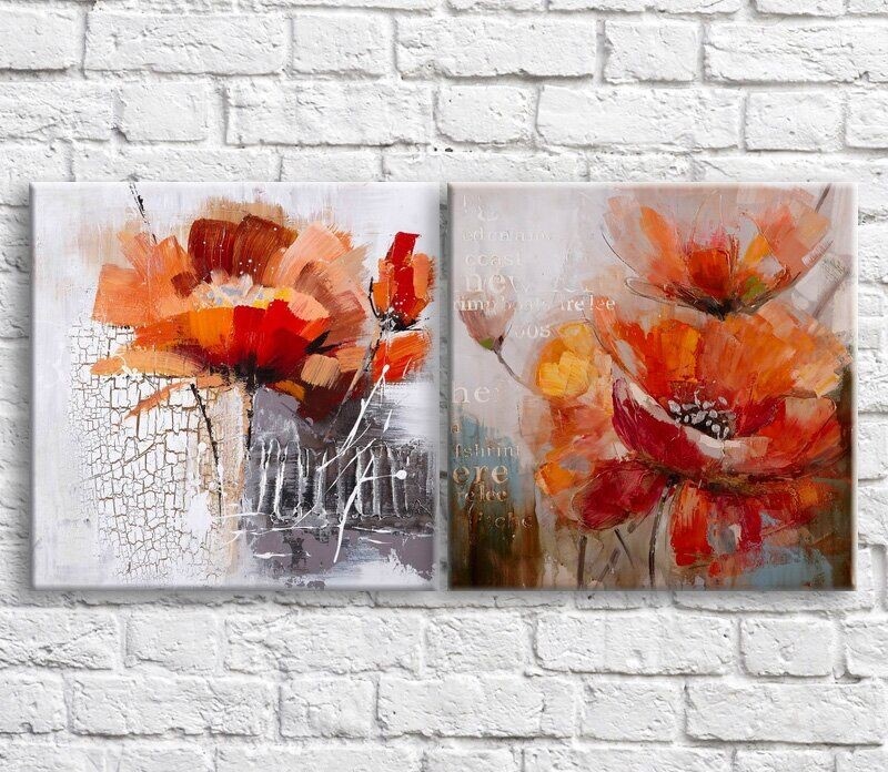 Картина ArtPoster Red/Orange poppies on a background of text and abstraction, diptych (3467728)