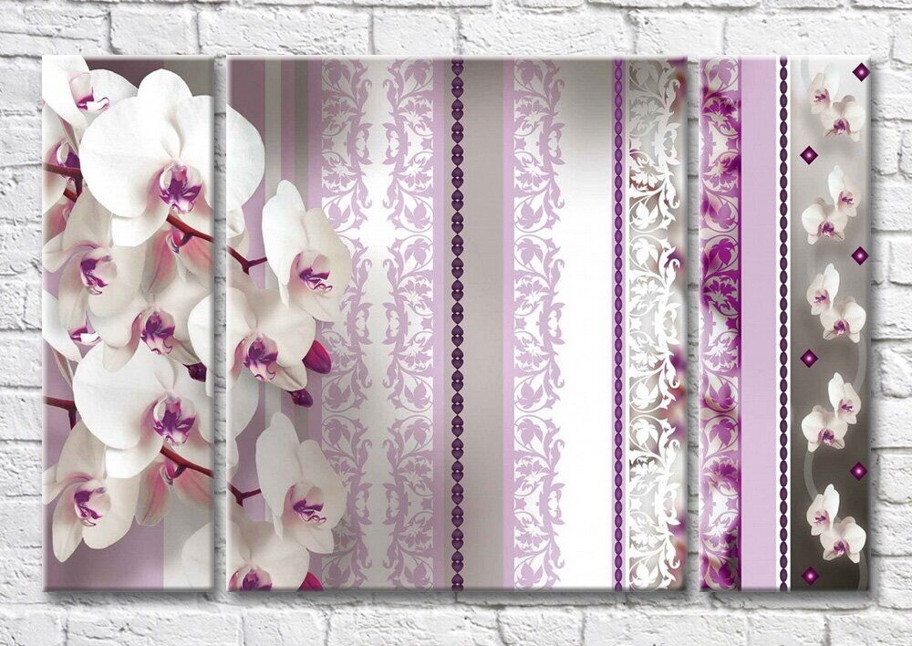 Картина Magic Color Branches of a White orchid on a Lilac patterned background (3565150)