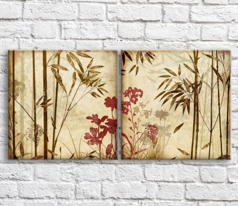 Картина ArtPoster Bamboo and Red flowers on Brown background (3467816)