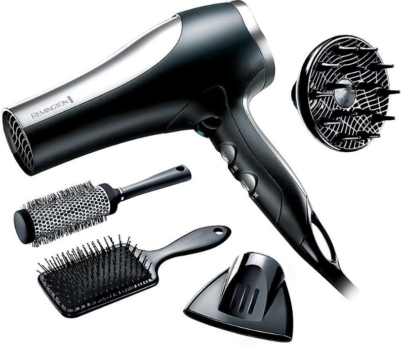 Если Вам нужен фен профессионального уровня, Remington D5017 – отличный выбор. Мощность данной модели составляет 2100 Вт, благодаря чему воздух подается с высокой скоростью, что позволяет высушивать волосы в считанные минуты. Это важно с учетом того, что за непродолжительное время сушки волосы успевают принять желаемую форму, а не высохнуть естественным способом. Вдобавок к этому Вы можете регулировать скорость воздушного потока и его температуру, что делает Remington D5017 универсальным. Данная модель подходит для любого типа волос, будь они густые и блестящие или, наоборот, ослабленные и поврежденные. К примеру, здоровые волосы можно смело укладывать на высокой температуре и при большой скорости воздуха, а ломкие, окрашенные и секущиеся рекомендуется сушить на низкой температуре и на первой скорости.