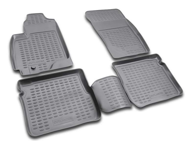 Коврики в салон для MITSUBISHI Outlander 2003-2006 изготовлены из экологически чистого полимерного материала. Представленные коврики пластичны, не боятся химически активных веществ. Одним из плюсов является фиксация ковриков специальными крепежами. Производитель гарантирует, что во время движения автомобиля коврики не сдвинутся с места. Конструкция ковриков исключает блокирование педали тормоза, акселератора или сцепления. Нужно отметить, что передние коврики имеют специальный язычок, который закрывает площадку отдыха левой ноги, а задние коврики соединены между собой перемычкой.
