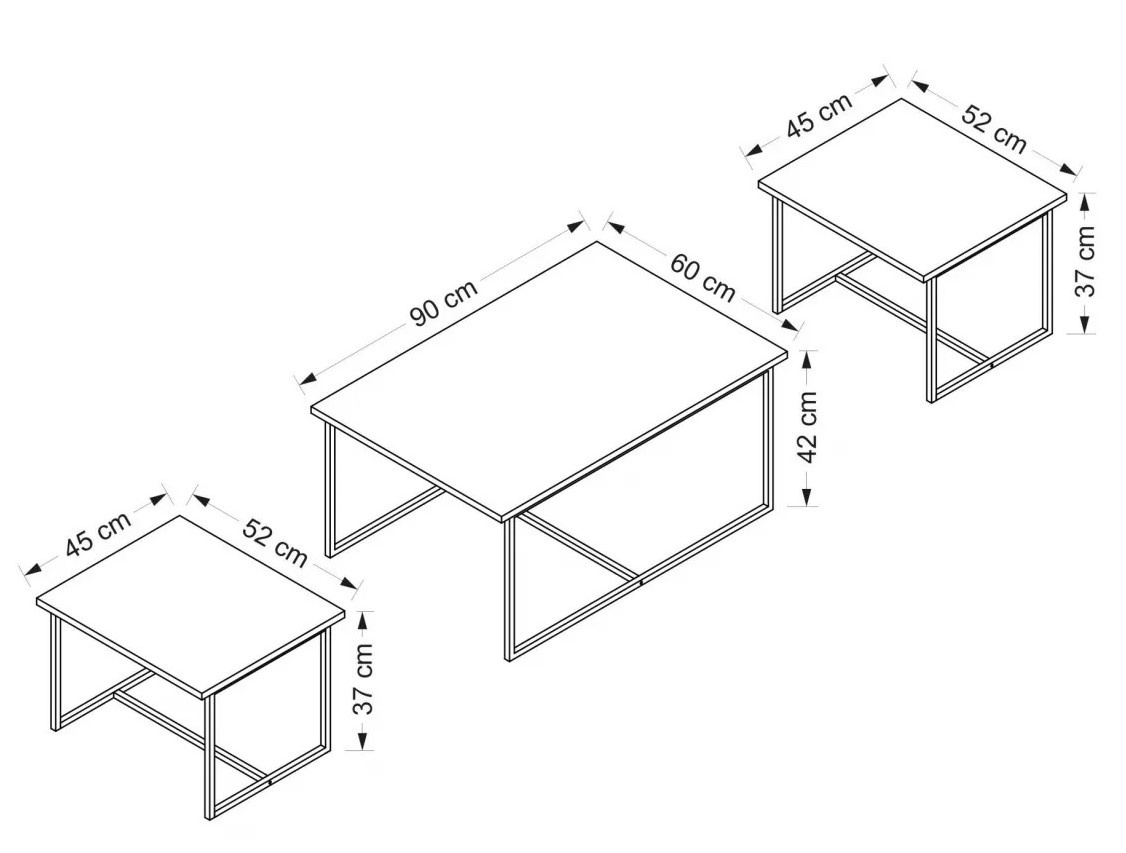 Особенностивторой и третий столик - высота 37 см, ширина 52 см, глубина 45 см
