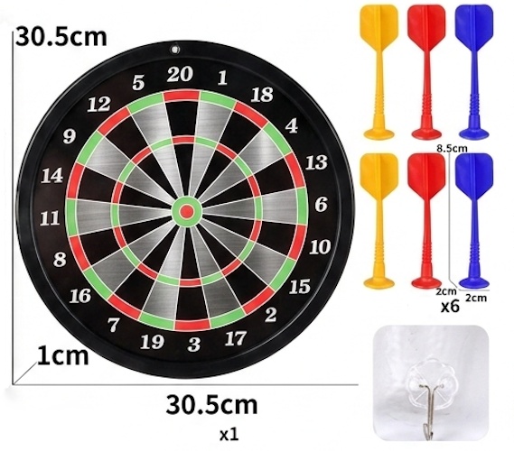 Дартс с магнитом- HD 01347- это увлекательная и безопасная игра, идеально подходящая для детей и всей семьи. Вместо острых наконечников дротики оснащены магнитными «головками», которые притягиваются к мишени без риска травм, что делает игру подходящей для домашнего использования или на праздниках.