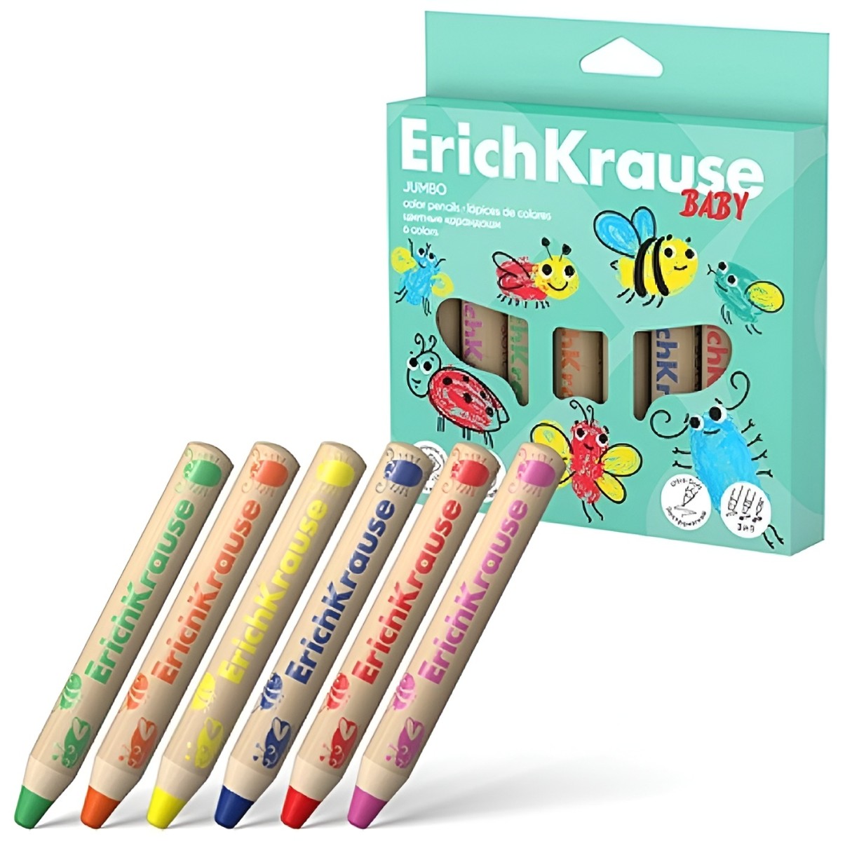 Цветные карандаши Erich Krause Baby Jumbo, 6 цветов, 3 в 1 — универсальный набор для маленьких художников, сочетающий свойства классических цветных карандашей, восковых пастелей и акварели. Идеален для творчества и экспериментов с различными техниками рисования.