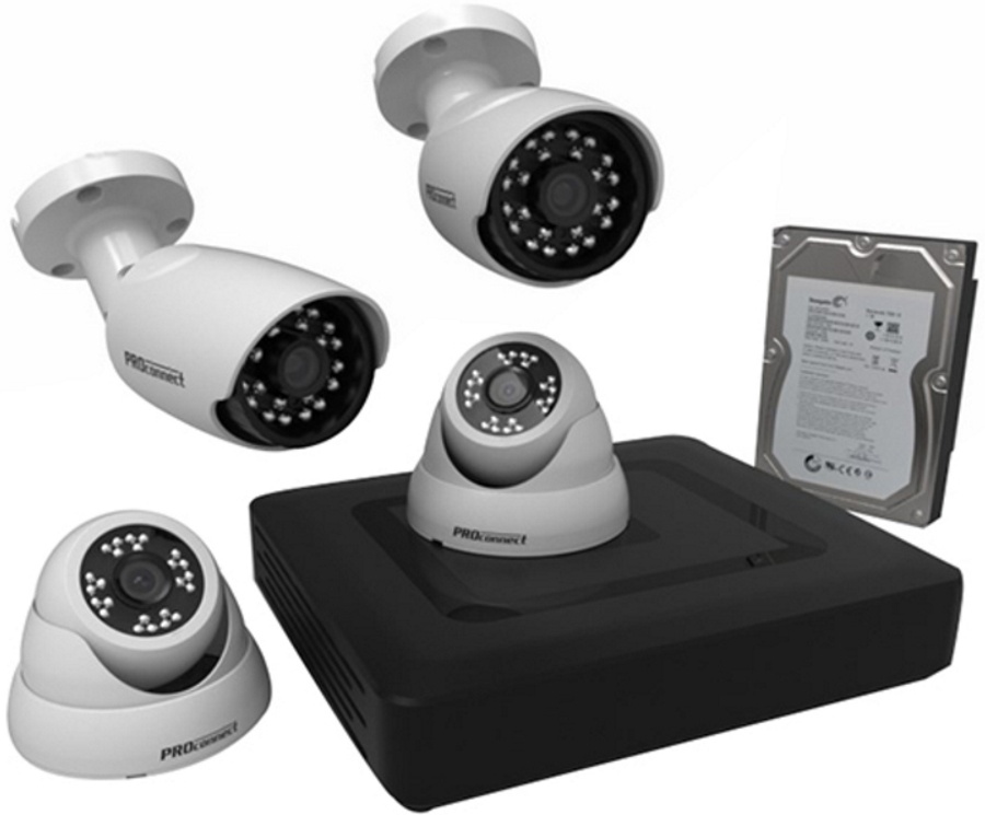 Готовый для установки Набор видеонаблюдения ProConnect с строгим диском, состоящий из 2-х всепогодных AHD видеокамер, 2-х купольных AHD видеокамер внутренней установки и 4-х канального AHD видеорегистратора со скоростью записи 100к/с и вероятностью работы с AHD и аналоговыми камерами . Камеры обустроены высокочувствительной матрицей, предоставляющей отменное качество изображения. Оснащение трудится на базе новой технологии AHD, позволяющей транслировать изображение с разрешением от 720P по коаксиальному кабелю на расстояние до 500 м без задержек и утрат .