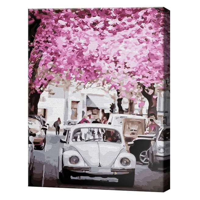 Картина по номерам Art Gallery Econom Цветущие деревья и белый автомобиль 40x50cm (GX31972)