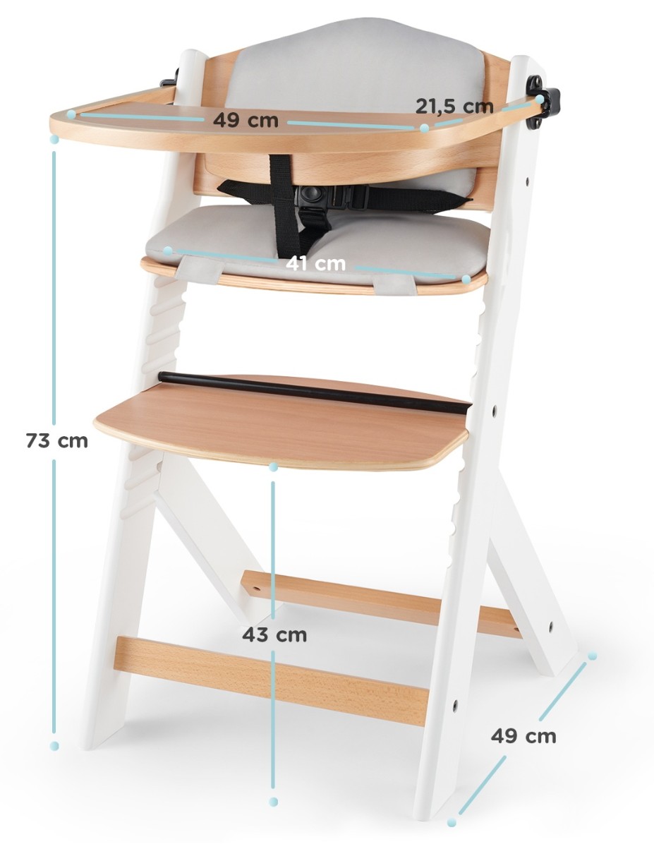Существует стульчик для кормления, который прослужит ребенку несколько лет? Да! Именно таков стульчик для кормления Kinderkraft Enock. Этот вневременной предмет мебели является как безопасным и практичным стульчиком для кормления, так и эргономичным стульчиком для детей старшего возраста. Как это возможно? Высота сиденья и подставки для ног регулируются, что позволяет легко адаптировать кресло возрасту ребенка.