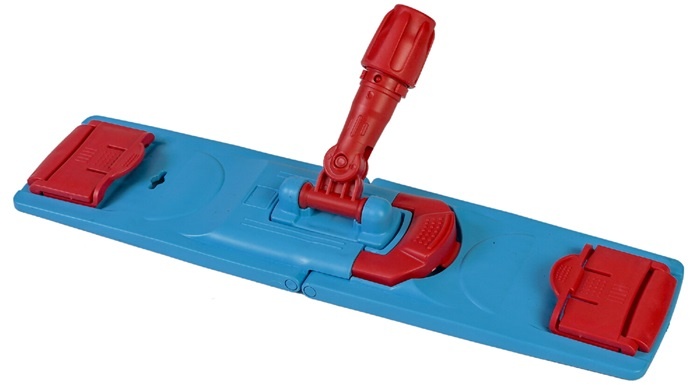 Простой, профессиональный держатель мопов выполнен из высококачественного, ударопрочного пластика. Имеет две педали. Шарнирное соединение обеспечивает свободное движение по любой поверхности. Подходит к рукояткам с резьбовым и фиксирующим через кольцо рукояткам.