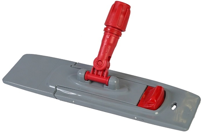 Простой, профессиональный держатель мопов выполнен из высококачественного, ударопрочного пластика. Имеет две педали. Шарнирное соединение обеспечивает свободное движение по любой поверхности. Подходит к рукояткам с резьбовым и фиксирующим через кольцо рукояткам.