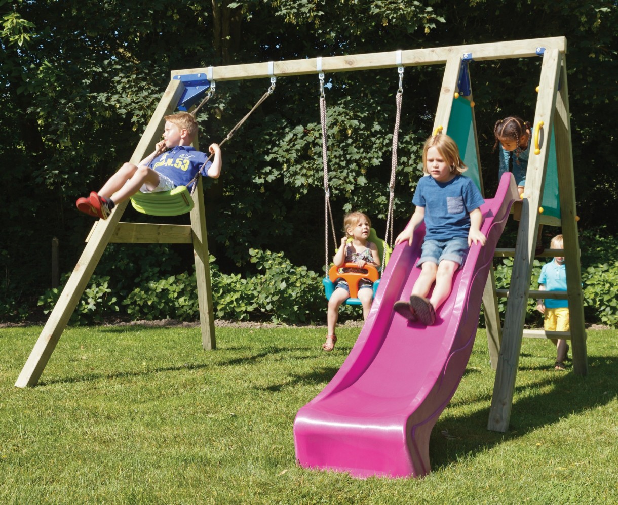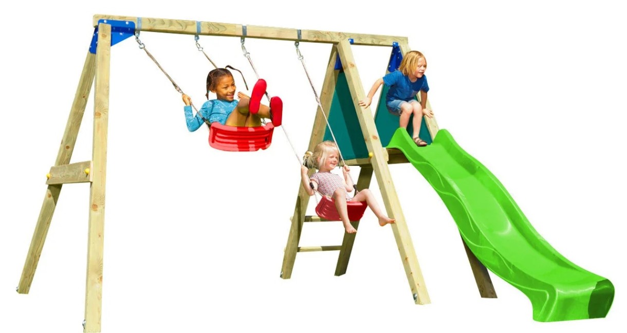 Детский игровой комплекс DECKSWING с горкой и двойными качелями предназначен для для частного использования, для детей от 3 до 14 и является отличным соотношением цены и качества. Комплекс имеет деревянную конструкцию.Комплекс крепится к земле с помощью анкеров (без бетонирования) Детской площадкой DECKSWING одновременно могут пользоваться 1-6 детей. Материал: сосна. Столбы домика сечением 80мм х 80мм и 90мм х 90мм
