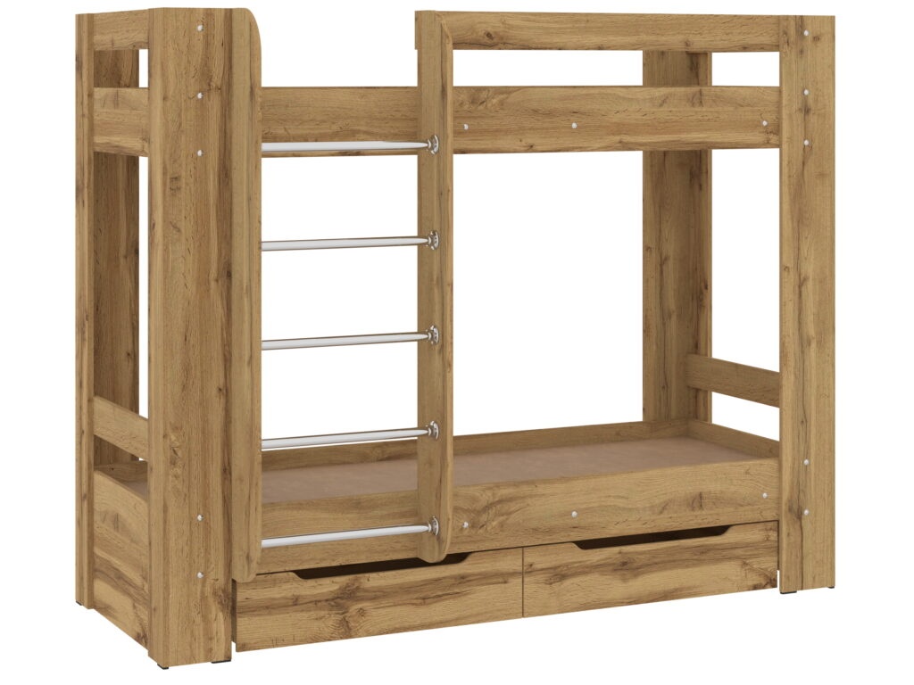 Удобная двухъярусная кровать «Дуэт-3» поможет разместить ваших детей в небольшой детской. Изделие изготовлено из высококачественного и экологически чистого ламинированного ДСП с защитным кромкованием пленкой ПВХ. Кровать оборудована удобной и безопасной лесенкой и защитным бортиком без острых углов во избежание травматизма ребенка. В данной модели предусмотрены ящички для белья или игрушек. Кровать станет для детишек не только местом для отдыха, но и излюбленным местом для игр.