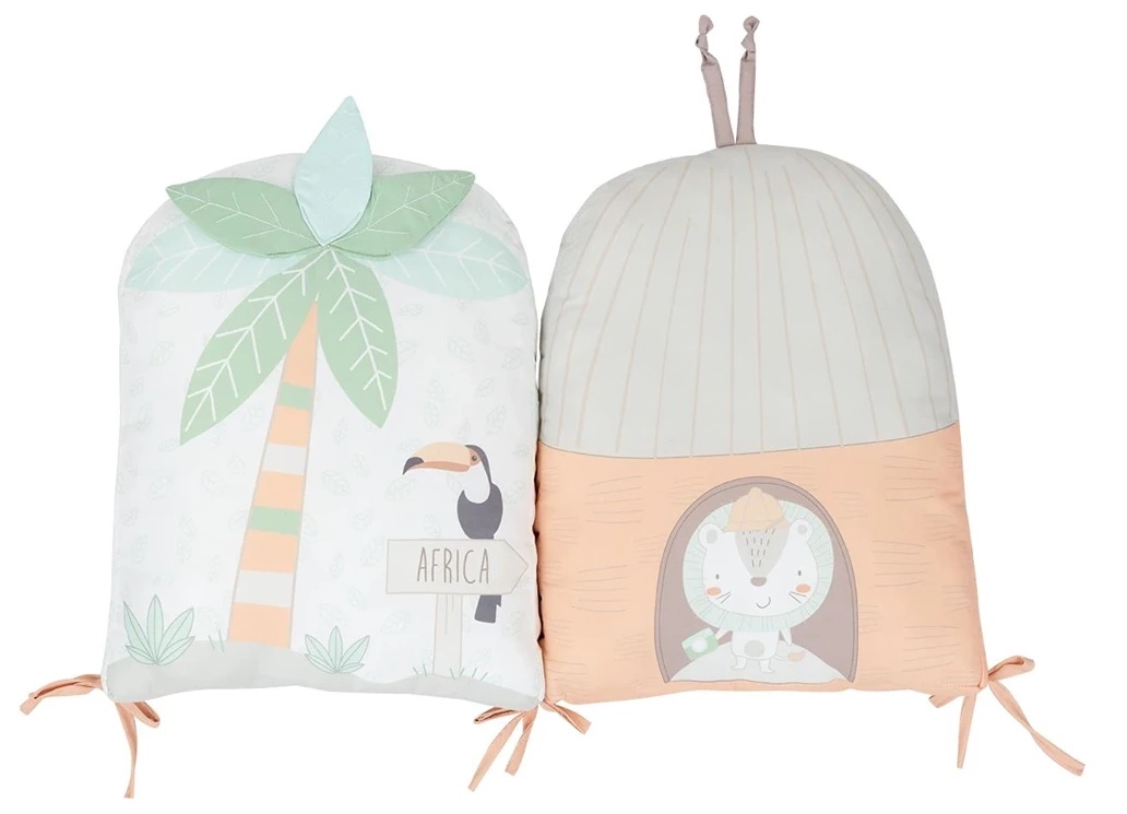 Завязки, прикрепленные к каждой подушке, обеспечивают легкое крепление к кроватке.