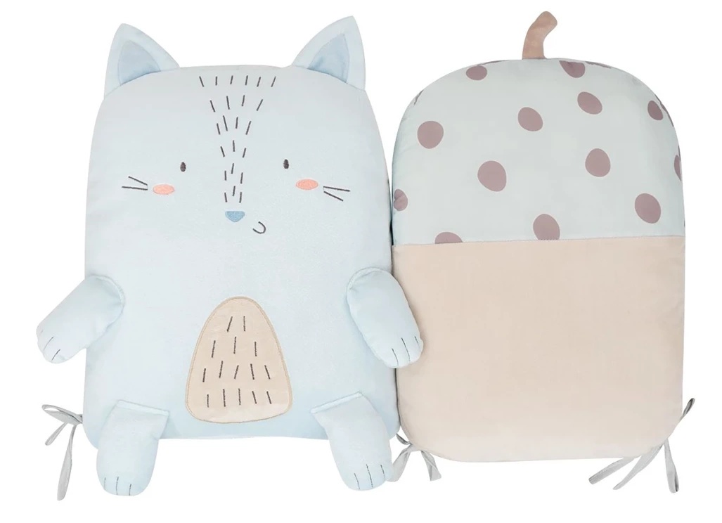 Завязки, прикрепленные к каждой подушке, обеспечивают легкое крепление к кроватке.