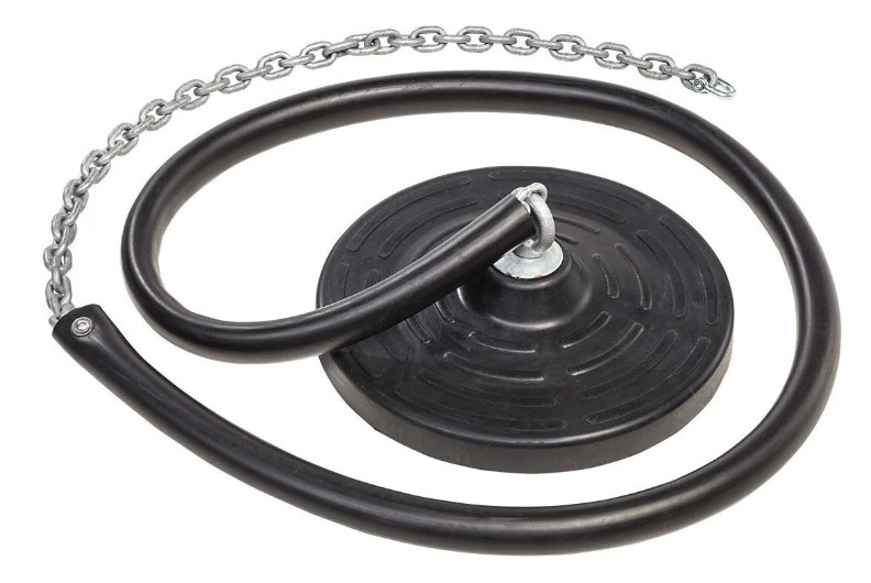 Материалы: Сиденье-Диск изготовлено из литой под давлением резины TPE (термопластичный эластомер). Литое сиденье имеет внутри алюминиевую вкладку 3мм. Поставляется в комплекте с цепью Ø 6мм из нержавеющей стали и с защитным рукавом. Цепь сверху завершается D-образным шекелем.