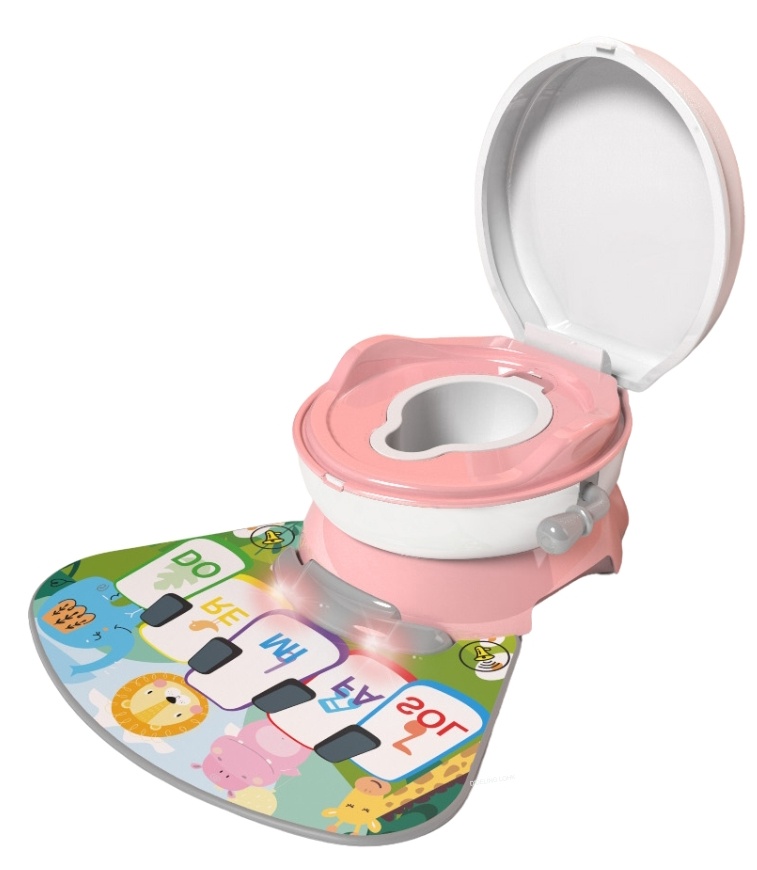 Развивающая интерактивная игрушка, предназначенная для детей, которые учатся пользоваться туалетом. Горшок оснащен текстильным ковриком, который издает забавные звуки и мелодии, что помогает создать приятные и стимулирующие впечатления. Змеевик можно отсоединить и использовать как переходник для обычного унитаза.