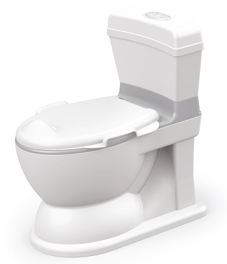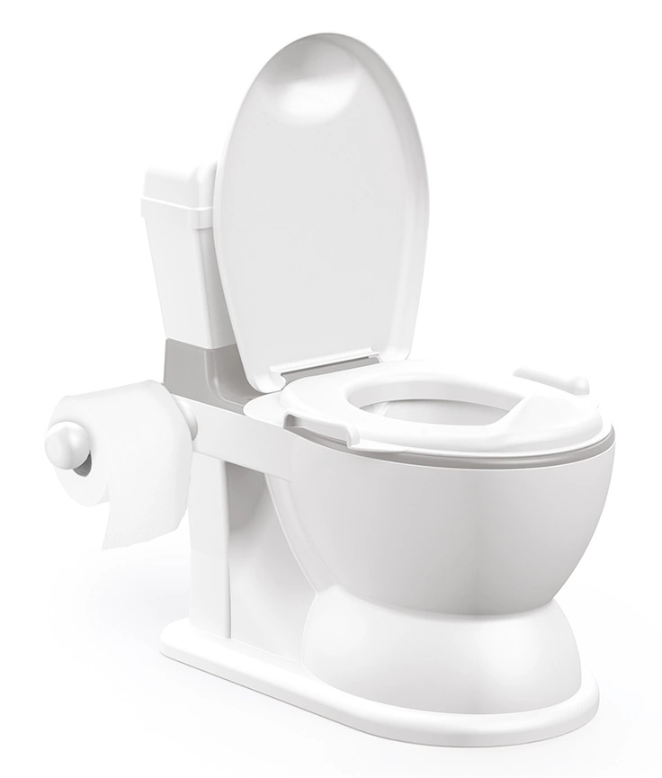 Дизайн и размер: Детский обучающий унитаз выполнен в классическом белом цвете. Он значительно ниже обычного унитаза, чтобы ребенок мог легко сесть на него. Высота до сиденья: 28 см