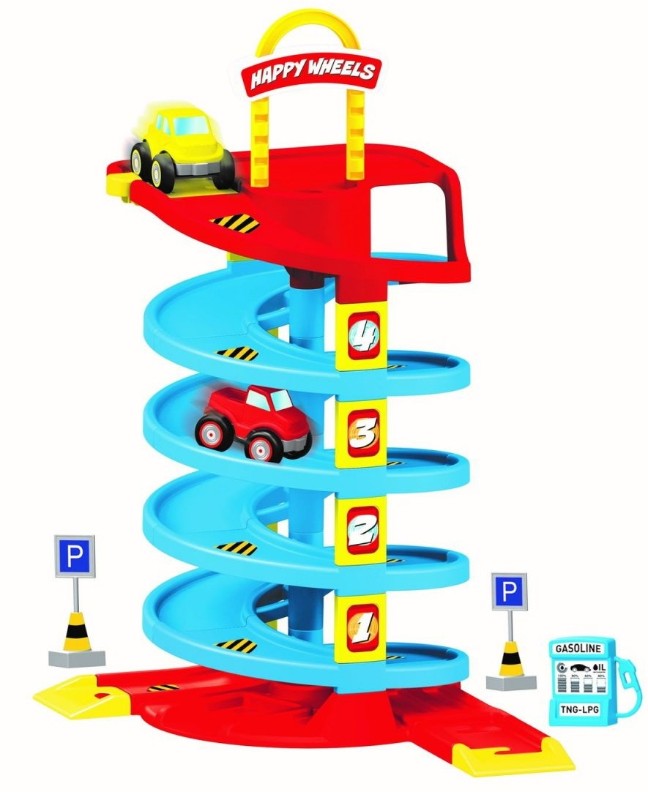 Cпиральный трек с машинками Dolu Гараж 5153 предназначен для детей старше 1,5 лет. Он имеет 4 уровня, а также дорожные знаки и заправочную станцию. С верхних уровней можно спускать машинки по спиральному спуску. В комплекте идет 2 машинки.