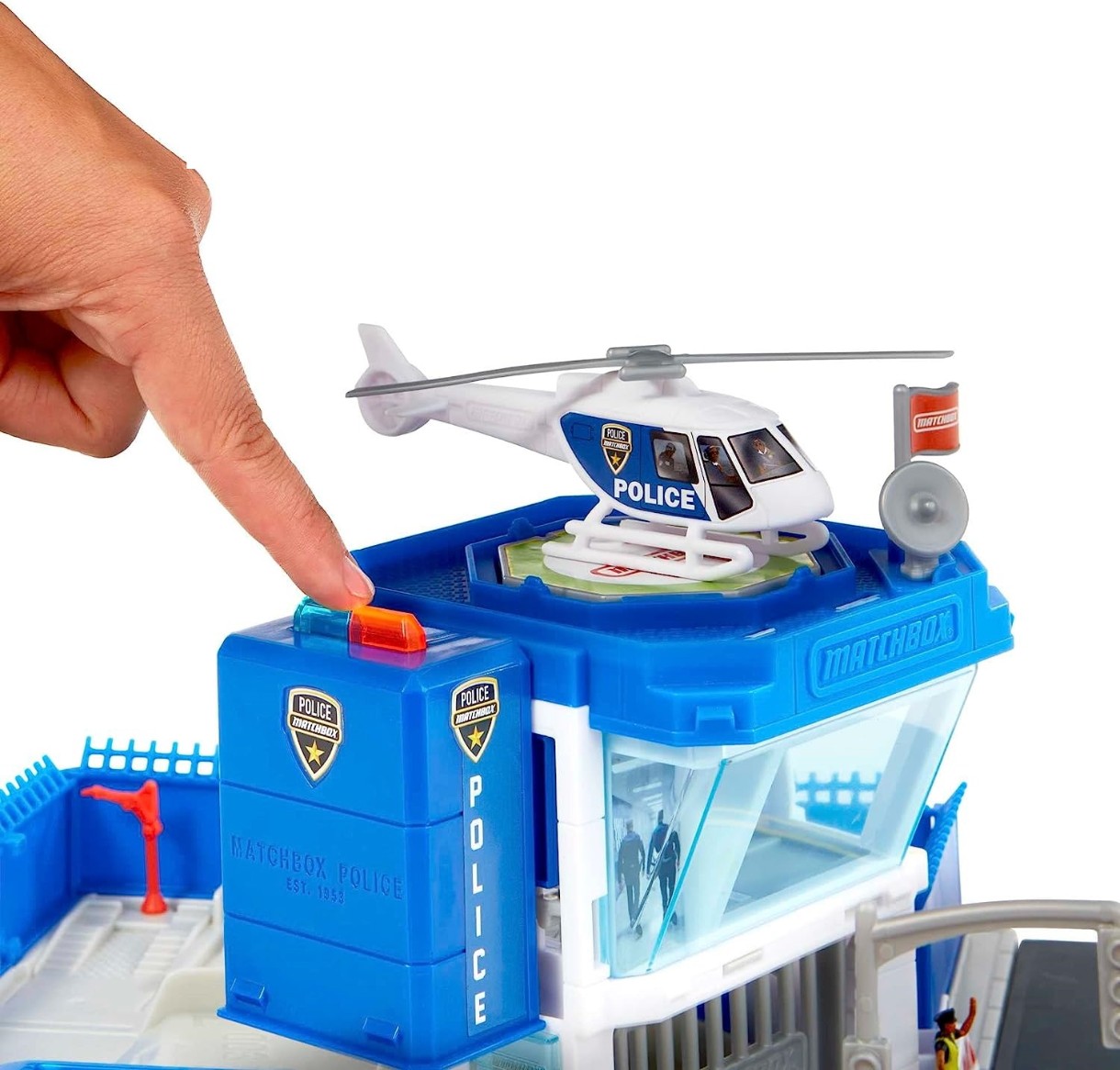 Он имеет реалистичные огни и звуки, имитирующие настоящий полицейский участок.