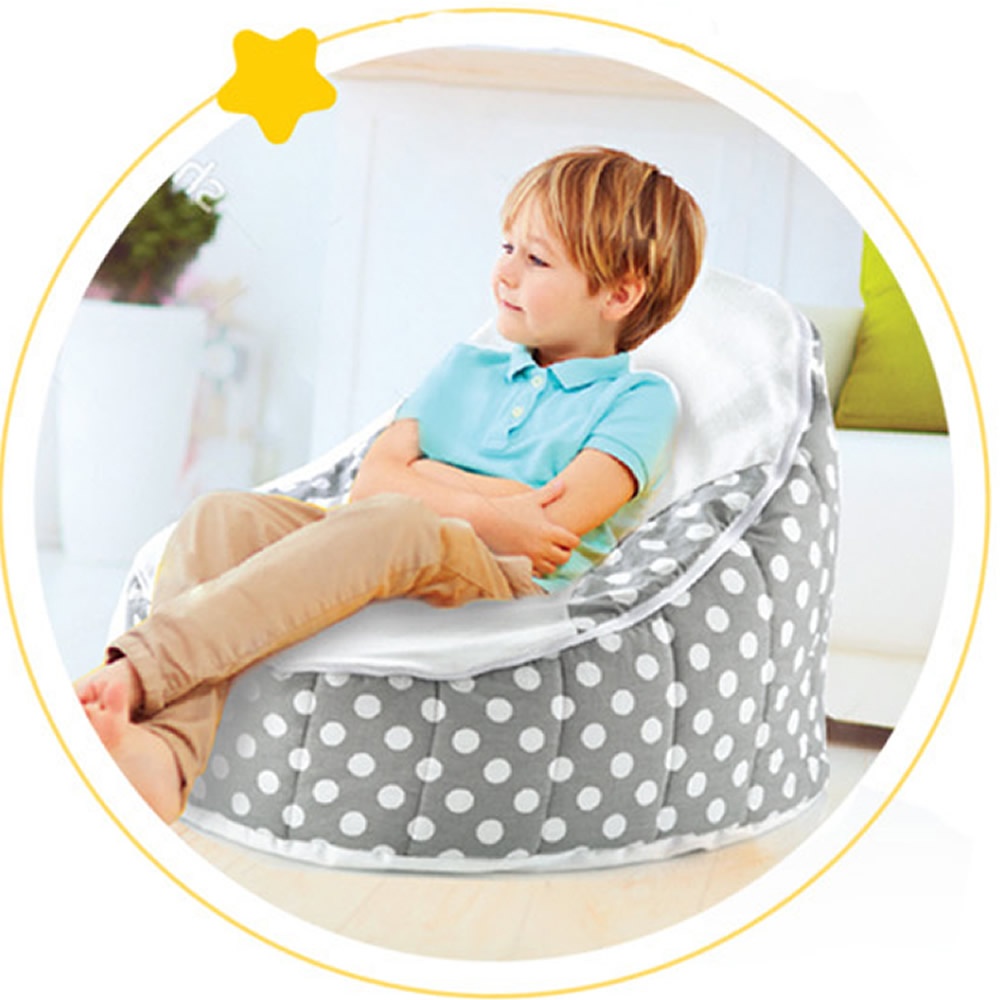 На этом кресле младенец сидит в полуутробной позе, к которой он привык в утробе матери, позе, которую он воспринимает как безопасное и спокойное пространство.