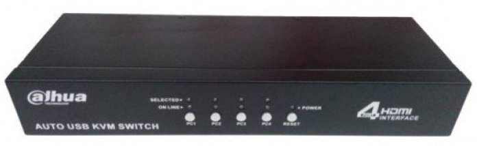 KVM коммутатор Dahua DH-KVM0401HM-E100 четырёхканальный используется для объединения устройств (компьютеров, мониторы) в одну сеть, которые подключаются с помощью кабелей длиной 1,5 метра (входят в комплект). В устройстве реализована функция горячего подключения по USB-интерфейсу. Оснащён светодиодным индикатором состояния канала. Оборудован интерфейсами HDMI и USB. Функция сканирования позволяет выполнять проверку работы подключенных персональных компьютеров с промежутком 3-99 секунд. Управление осуществляется с помощью клавиатуры и мыши, подключенных к USB-порту.