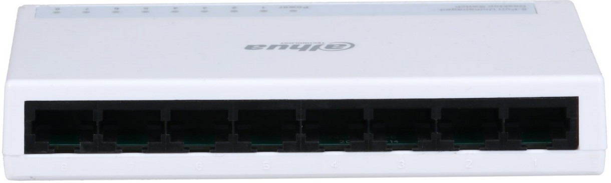 Коммутатор оснащен 8 портами 100 Мбит/с с автосогласованием и разъемами RJ45. Все порты поддерживают функцию авто-MDI/MDIX, устраняя необходимость использования кабеля с перекрещивающимися парами или портов с поддержкой функции Uplink. Благодаря использованию неблокирующей архитектуры коммутатор может передавать и фильтровать пакеты на максимально возможной для сетевой среды скорости для обеспечения максимальной пропускной способности. Значительным образом улучшена передача файлов большого размера за счет использования Jumbo-кадров размером 10 Кбайт. Контроль потока IEEE 802.3x для полнодуплексного режима и контроль обратного потока для полудуплексного режима помогают избежать перегрузок и обеспечивают надежную передачу данных, благодаря чему работа коммутатора отличается большой надежностью.
