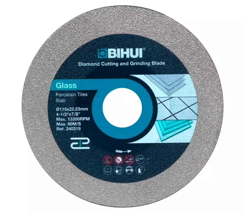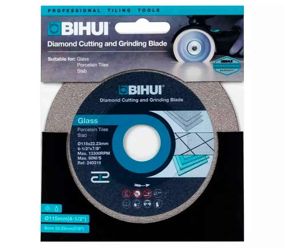 Универсальный шлифовально-отрезной алмазный диск BIHUI предназначен для гладкой резки, снятия фаски и шлифования стекла, нефрита, керамики, керамической плитки и других материалов, также применяется для удаления уже уложенной фуги минимизируя риск появления нежелательных сколов. За счет высокого бокового алмазного слоя в 30 мм позволяет обрабатывать глазурованные материалы не повреждая поверхность и не оставляя сколов. Эффективен как при сухой, так и при резке с охлаждающей жидкостью (использование водяного охлаждения ускоряет процесс резки и увеличивает срок службы диска).