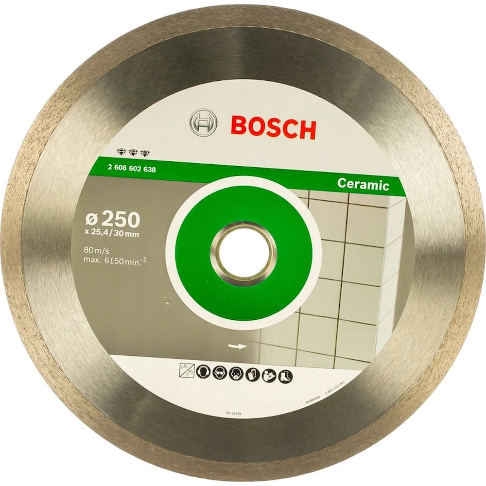 Алмазный диск Best for Ceramic Bosch 2608602638 является сменным элементом настольных и бензиновых пил. Применяется при резе керамической плитки, сверхтвердого керамогранита и натурального камня. Данный диск позволяет выполнять пропилы быстро, чисто, точно без больших усилий и без сколов. Алмазный диск Bosch изготовлен в соответствии с самыми жёсткими стандартами качества EN13236 и OSA.