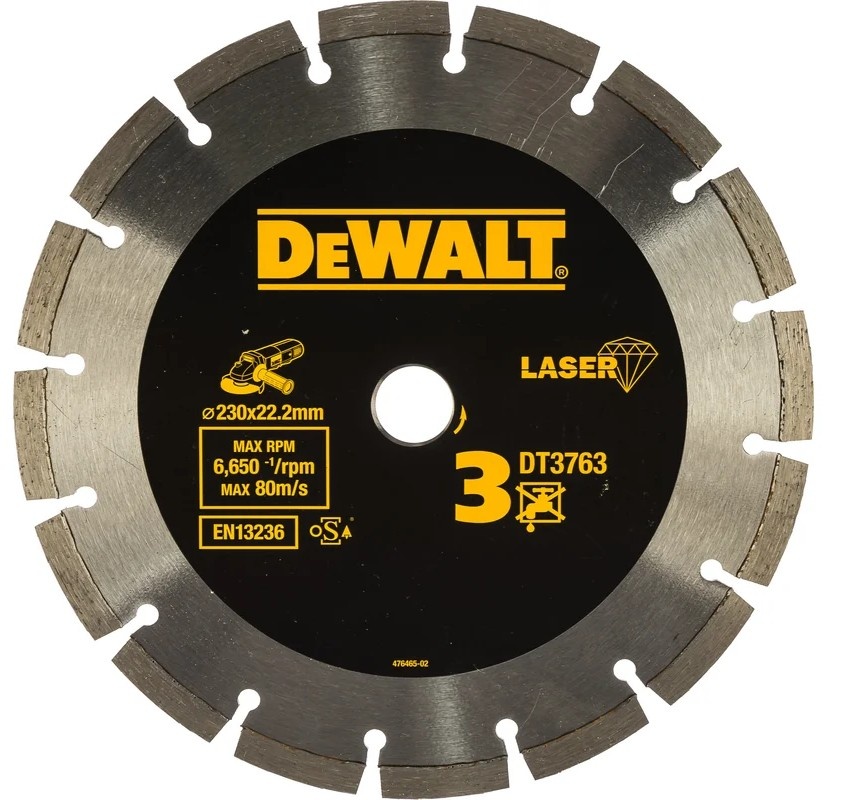 Алмазный отрезной диск с лазерной сваркой сегментов DeWalt DT 3763 является сменным элементом для угловых шлифовальных машин. Применяется для сухого реза по мрамору и граниту.