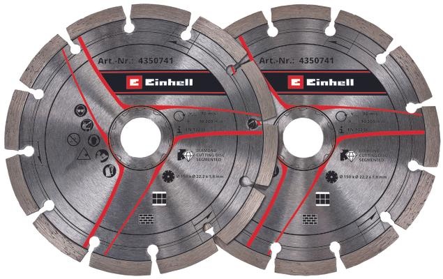 Набор алмазных отрезных дисков Original Einhell 150 мм – практичный аксессуар для стенорезов. Два алмазных отрезных диска используются в сочетании с фрезой для пазов стен для мощного фрезерования пазов и канавок в каменной кладке. Они особенно подходят для фрезерования камня, бетона, плитки, керамики, керамогранита, мрамора и гранита. Благодаря внутреннему диаметру 22,2 мм алмазные отрезные диски можно использовать с настеннорезным станком Einhell TE-MA 1700, а также устанавливать на устройства других производителей. Максимальная скорость использования алмазных отрезных дисков Einhell составляет 10 200 об/мин. В комплект поставки входят два алмазных отрезных диска толщиной 1,8 мм и диаметром 150 мм.