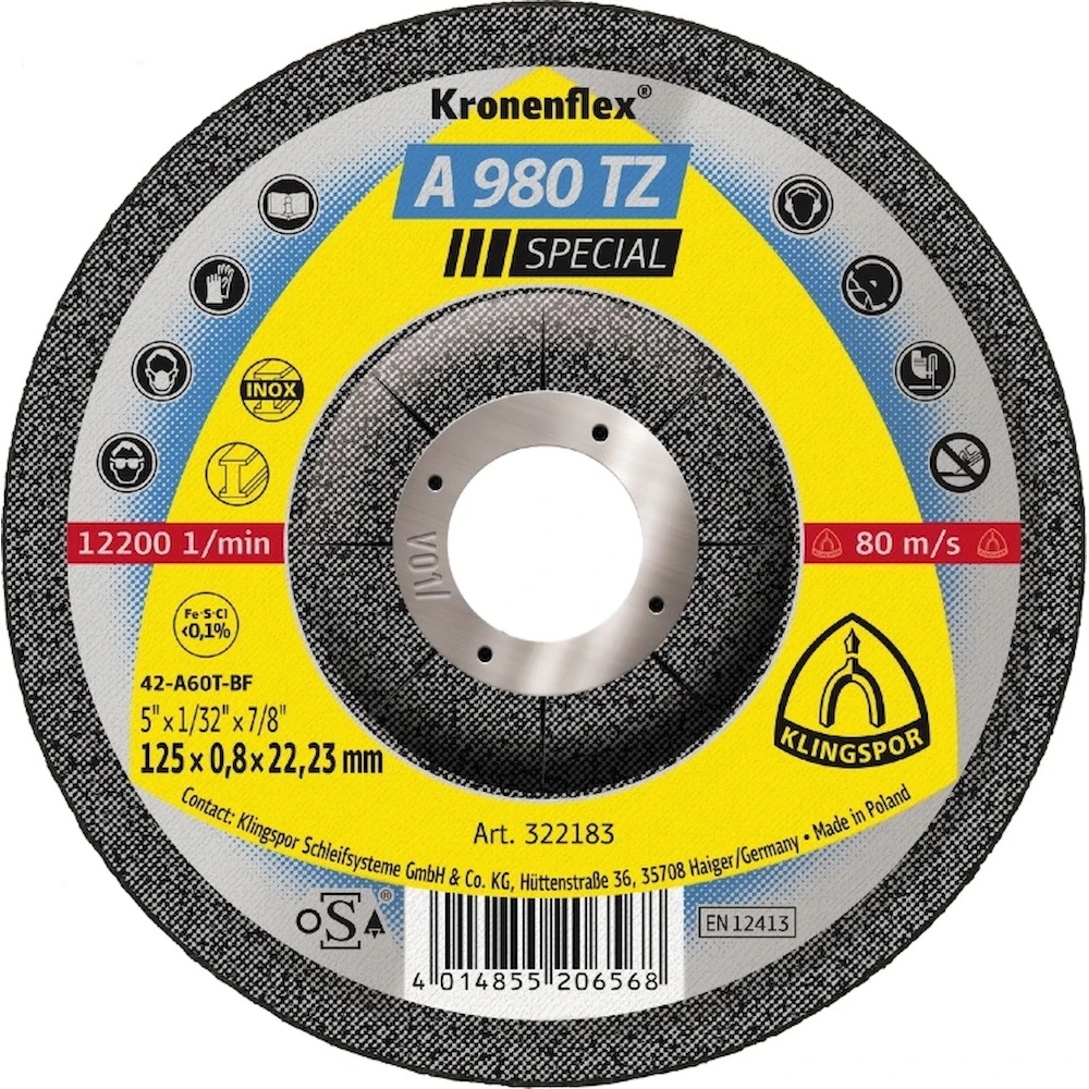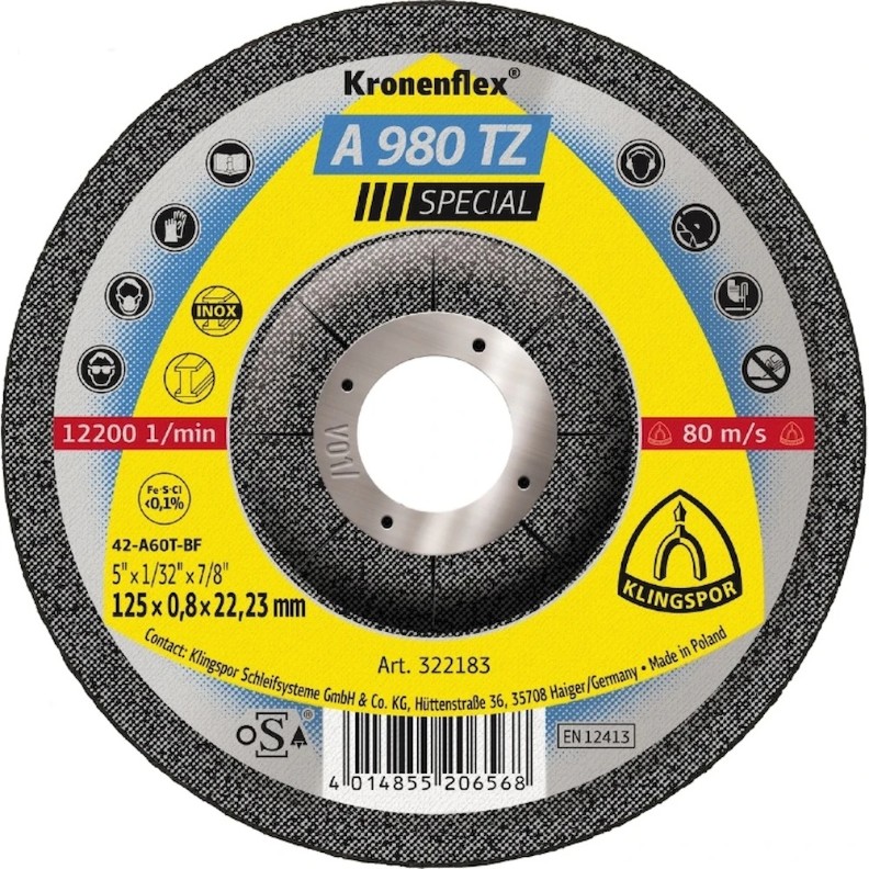 Высокопроизводительный супер тонкий 0,8 мм абразивный отрезной круг A 980 TZ Special Kronenflex для резки тонкостенных профилей, труб, листового материала.