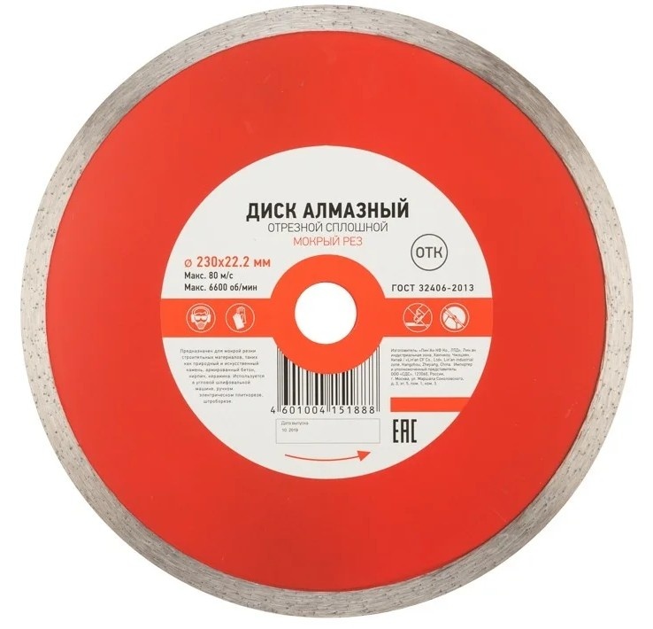 Диск алмазный отрезной сплошной KRANZ KR-90-0115 предназначен для мокрой резки строительных материалов, таких как природный и искусственный камень, армированный бетон, кирпич, керамика. Используется совместно с угловой шлифовальной машиной, ручным электрическим плиткорезом, штроборезом.