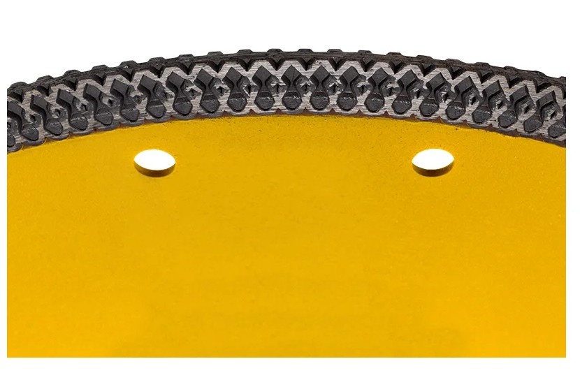 Процесс резки сопровождается воздушным охлаждением за счет особой формы алмазного слоя. Это позволяет пилить без водяного охлаждения.