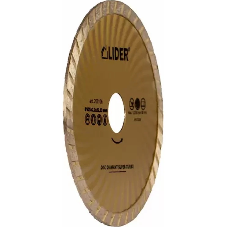 Диск алмазный super-turbo обладает режущей кромкой турбо-сегментного типа разной толщины, что обеспечивает повышенную износостойкость и высокую скорость работы. Применяется для резки бетона, гранита, мрамора, кирпича и керамической плитки.