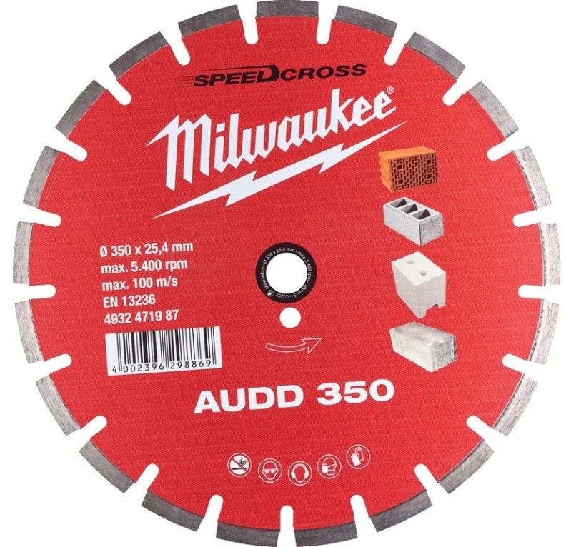 Диск алмазный Speedcross AUDD 350 Milwaukee 4932471987 предназначен для резчиков. Применяется для сухого/мокрого реза мягкого бетона, кирпича, строительных материалов, бетона.