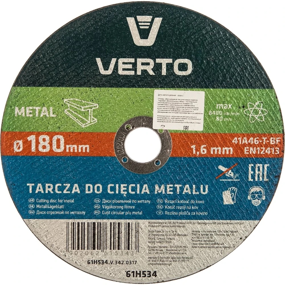 Диск отрезной VERTO 61H534 предназначен для угловых шлифовальных машин и ручных резчиков. Применяется для реза по металлу. Диск изготовлен в соответствии с требованиями стандарта EN 12413, что обеспечивает высокий уровень безопасности при работе.