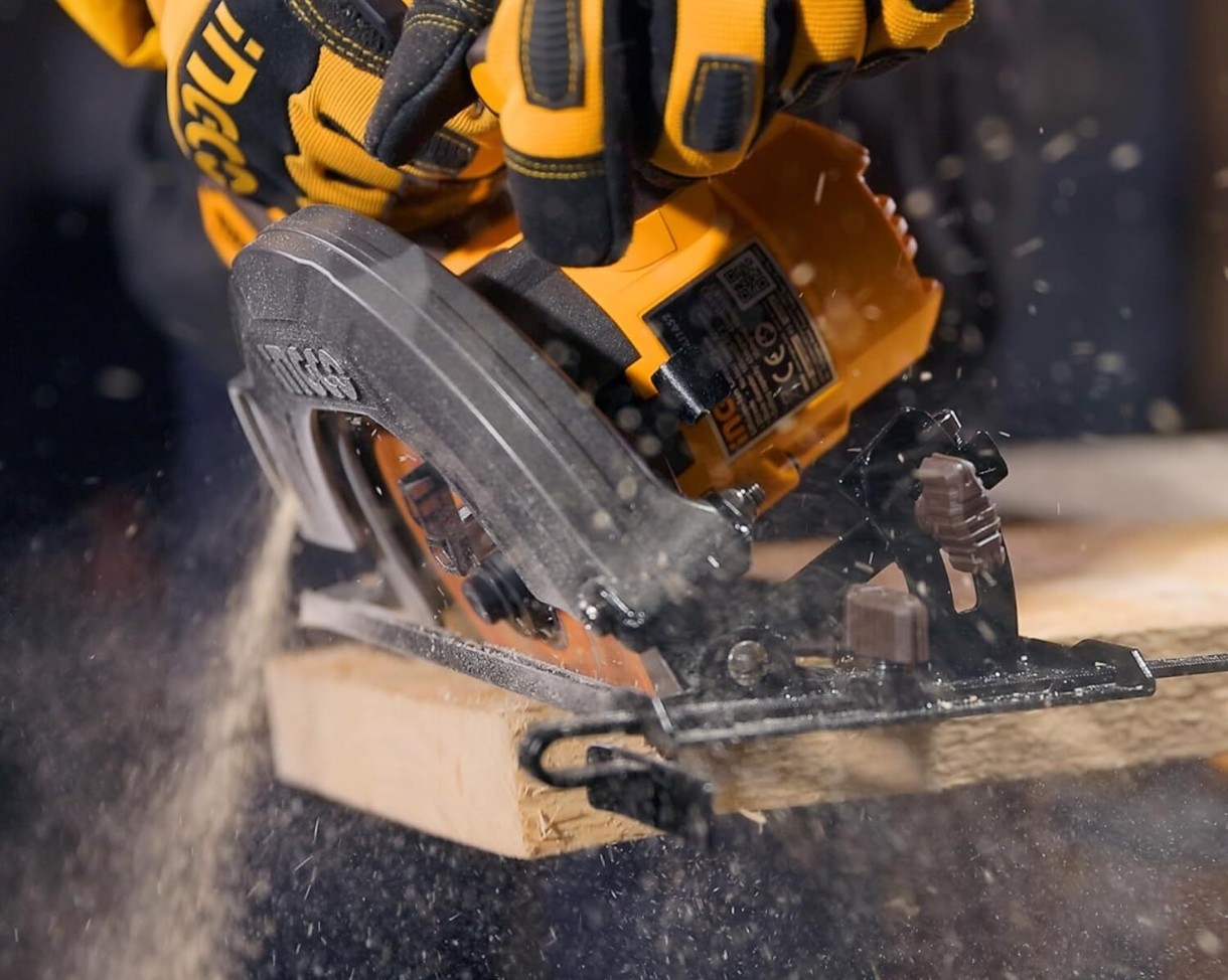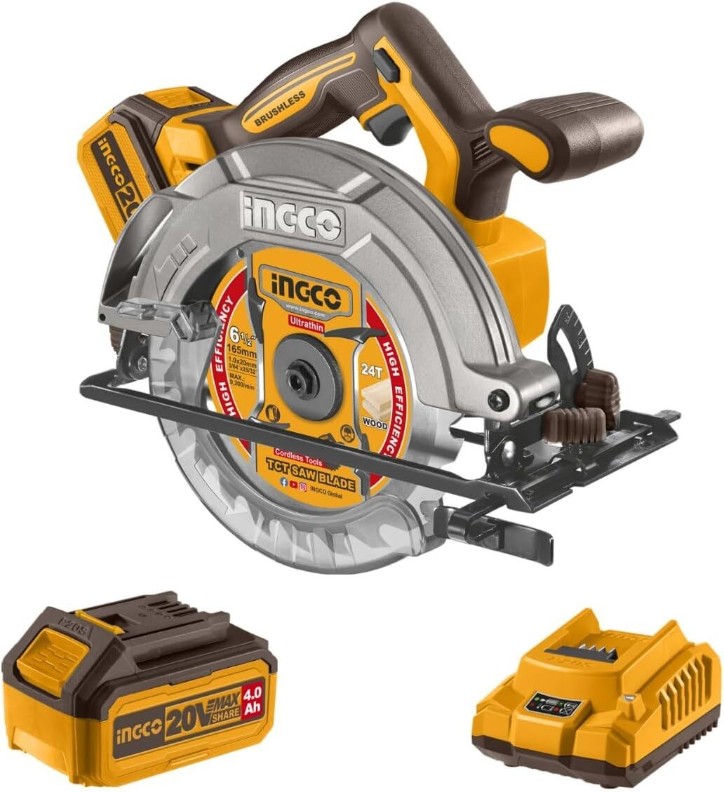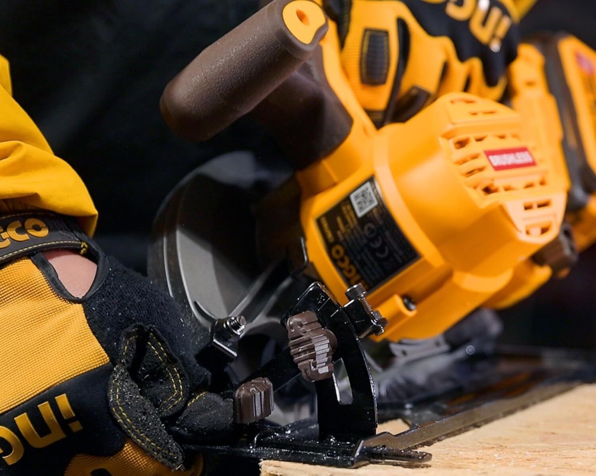 Циркулярная пила INGCO с бесщеточным мотором работает от аккумулятора напряжением 20V, обеспечивая высокую эффективность и долговечность. Она достигает скорости без нагрузки до 5200 об/мин, что позволяет быстро и точно выполнять резку.