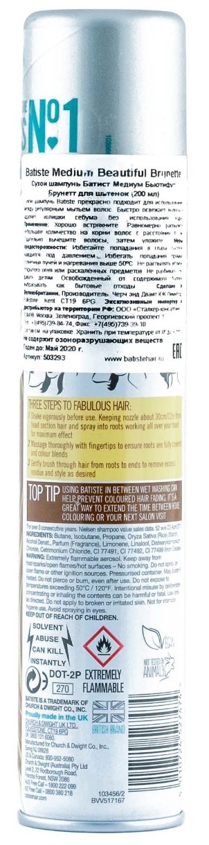 Batiste DARK — сухой шампунь, разработанный для обладательниц темных и темно-каштановых волос. Его действие не отличаются от оригинального шампуня, но это настоящая находка для тех, кого утомляет долго вычесывать белые частички у корней.