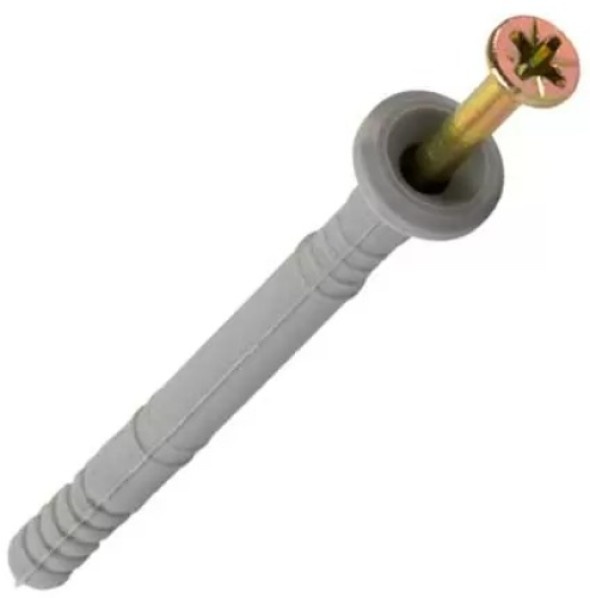 Дюбель с шурупом с бортиком и шлицем PH (Philips Head), забивного типа, предназначен для крепления элементов с плоскими и гладкими основаниями к различным поверхностям. Бортик у шурупа предотвращает проваливание крепежа в материал, обеспечивая аккуратное и надежное соединение. Забивной дюбель изготовлен из прочного пластика, а шуруп — из стойкого к коррозии металла с защитным покрытием.