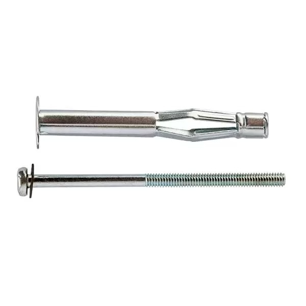 Дюбель "MOLLY" с оцинкованным покрытием и типом шлица PH (Phillips) предназначен для крепления в пустотелых стенах, таких как гипсокартон, пенобетон и другие подобные материалы. Оцинкованное покрытие обеспечивает защиту от коррозии, а крестообразный шлиц PH позволяет легко и надежно закручивать шуруп, минимизируя риск соскальзывания отвертки.
