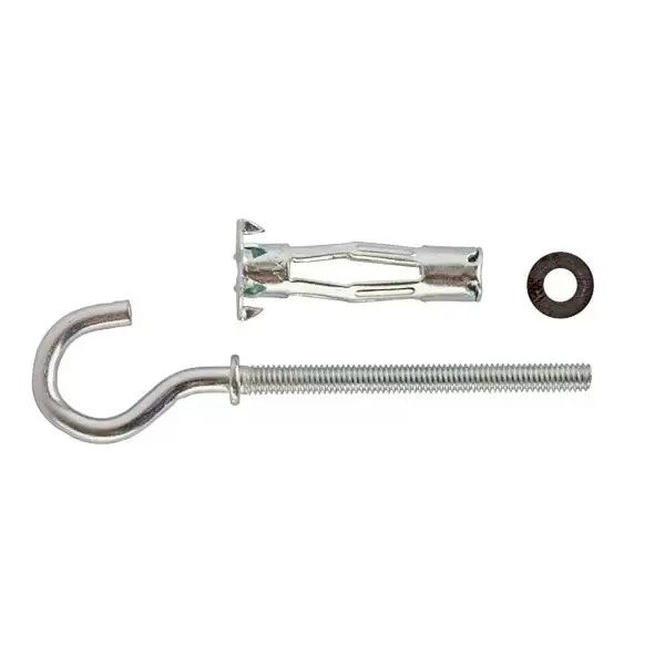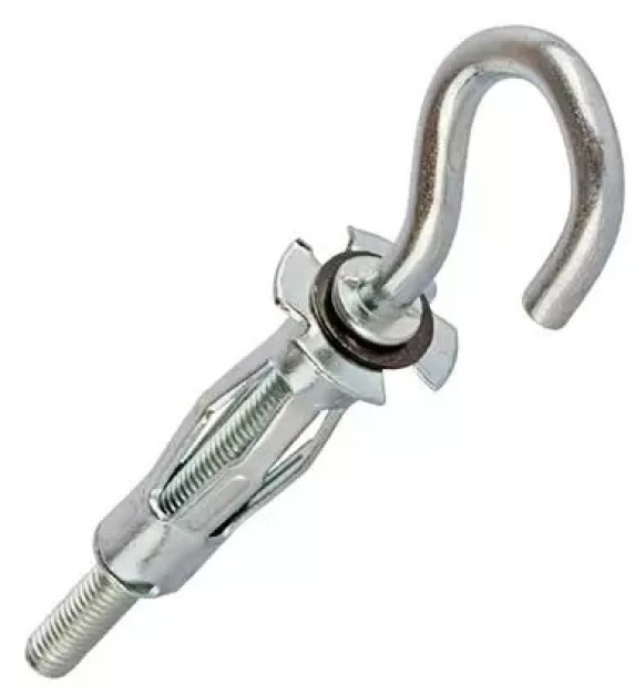 Дюбель "MOLLY" размером 4,0x32 мм, выполненный из оцинкованной стали и оснащенный полукруглым крючком, предназначен для крепления легких предметов к гипсокартонным, деревянным и другим пустотелым стенам. Полукруглый крючок идеален для подвешивания ключей, украшений, небольших растений в горшках и других декоративных элементов.