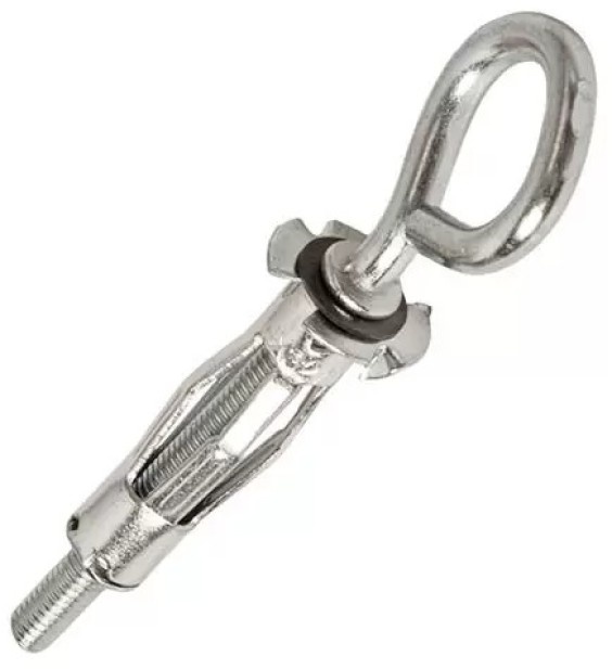 Дюбель "MOLLY" размером 4,0x32 мм, выполненный из оцинкованного металла и оснащенный круглым крючком, предназначен для крепления легких предметов к гипсокартонным и другим пустотелым стенам. Круглый крючок идеален для подвешивания домашних аксессуаров, украшений, легких светильников и других декоративных элементов.