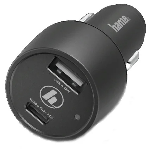 Автомобильная зарядка Hama USB-C+USB-A 42 Watt Black (183323)