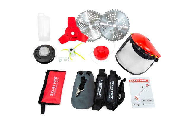 Триммер бензиновый (Мотокоса) START PRO SGT-4200 используется для кошения травы на садовых участках и дачах. Мотокоса START PRO SGT-4200 отличается малым весом и удобством в управлении. Модель оборудована мощным двигателем . Режущим элементом является леска а так же диски. Прямая штанга гарантирует удобство при работе с горизонтальными поверхностями. Легированная сталь, трехсекционный кованный коленвал и хромированное напыление обеспечивает надежную бесперебойную работу бензотриммера START PRO SGT-4200