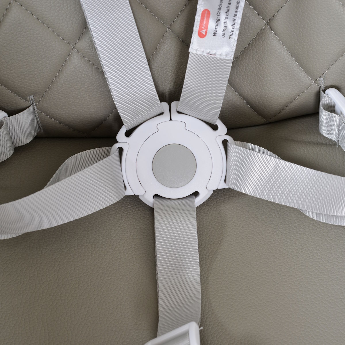 Кресло имеет ковшеобразное сиденье, обтянутое искусственной кожей, поэтому вы можете легко почистить его, если ваш ребенок что-то испортил. Кроме того, вашему ребенку будет приятно, мягко и комфортно. Стульчик для кормления Gelato оснащен 5-точечным ремнем безопасности, поэтому ваш ребенок всегда будет в безопасности в кресле. Благодаря съемной двухслойной столешнице кресло легко мыть. На столешнице имеется подстаканник, куда ваш малыш сможет поставить свою чашку. Удобная подставка для ног также обеспечит комфортное положение вашего ребенка.