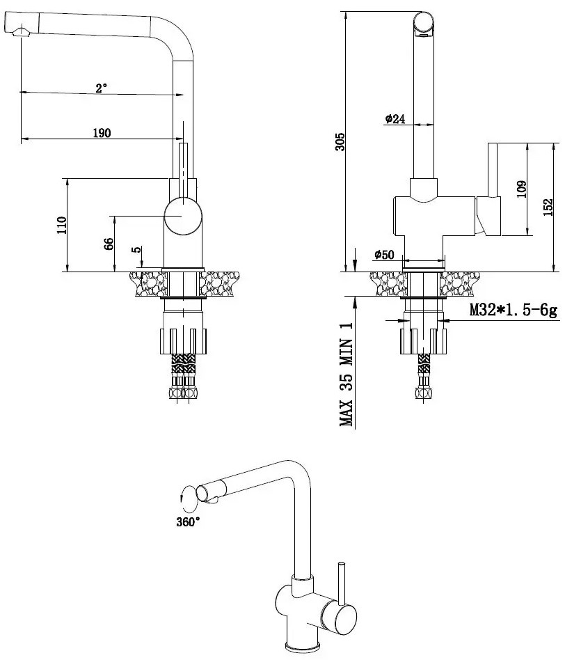 Угол поворота излива360 °