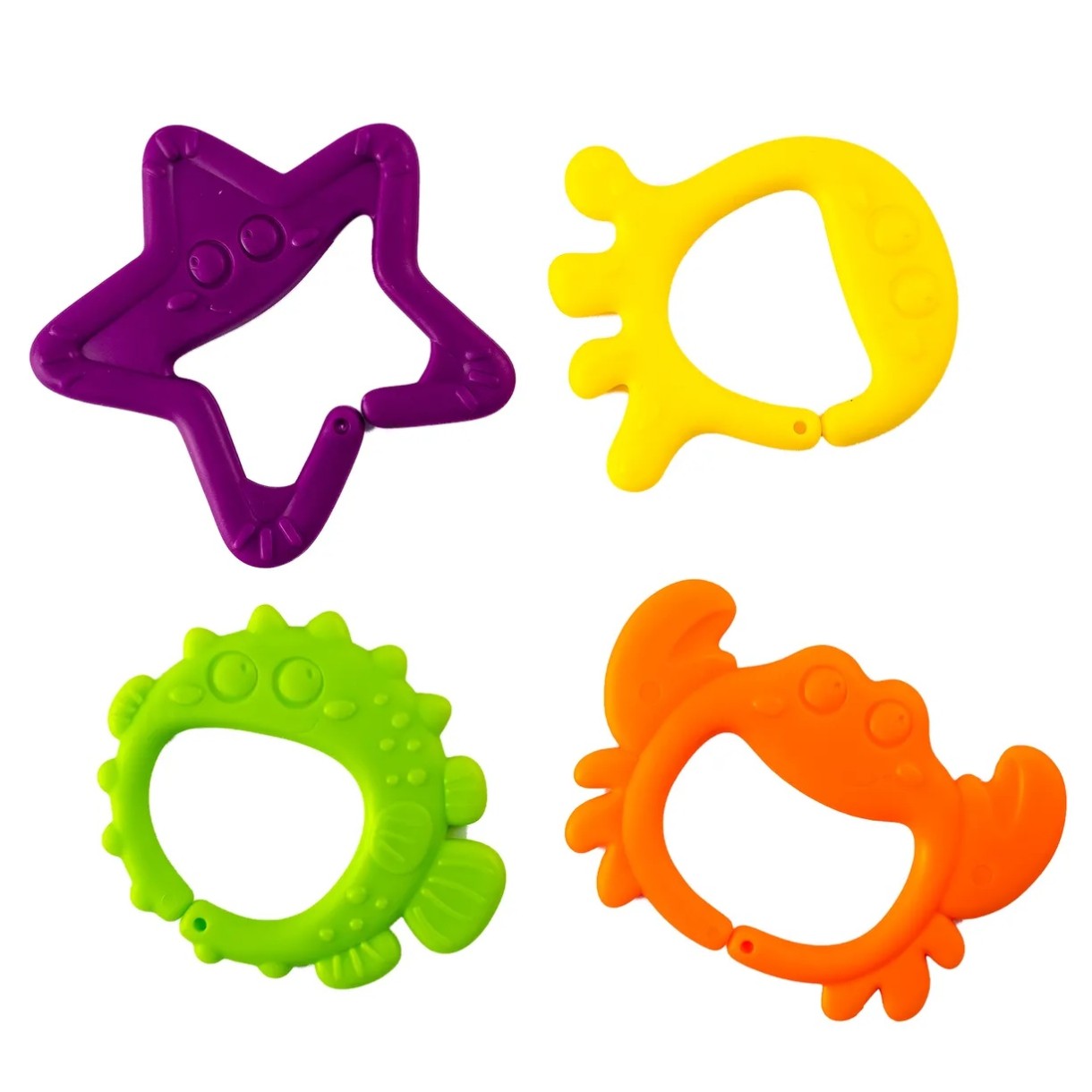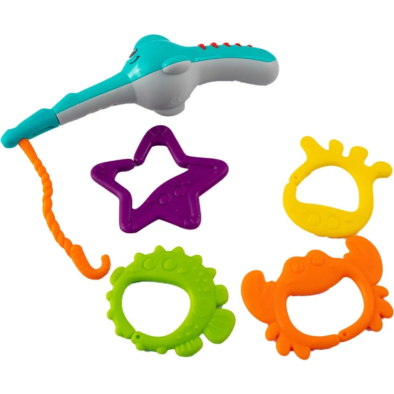 Водные процедуры станут гораздо веселее, если малыш возьмет с собой забавную удочку, пытаясь зацепить на крючок одну из морских фигурок, входящих в набор. Не стоит терять время даром, пора на импровизированную рыбалку!
