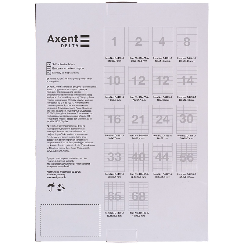 Самоклеящиеся этикетки для принтера Axent A4/100p 12pcs D4479-A