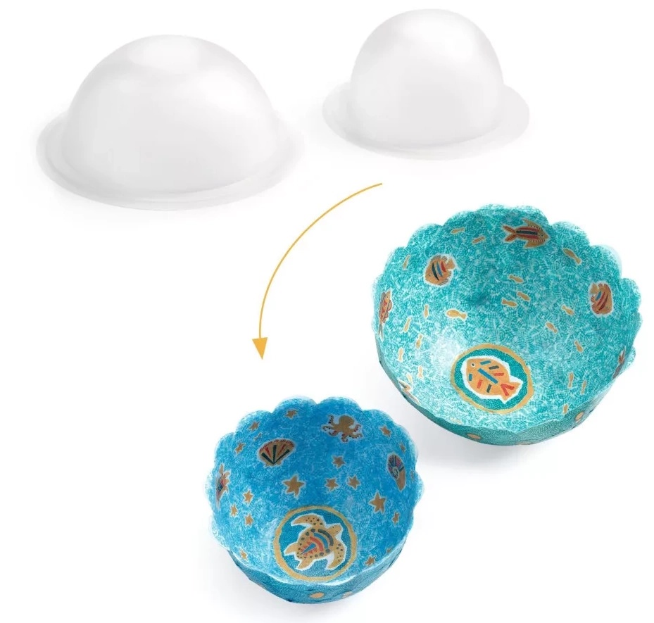 Комплектация2 миски (2 размера: Ø 9 см / Ø 12 см), 2 тюбика жидкого клея, 1 палитра, 1 кисть, множество иллюстрированных бумажных конфетти, 1 лист пошаговых инструкций