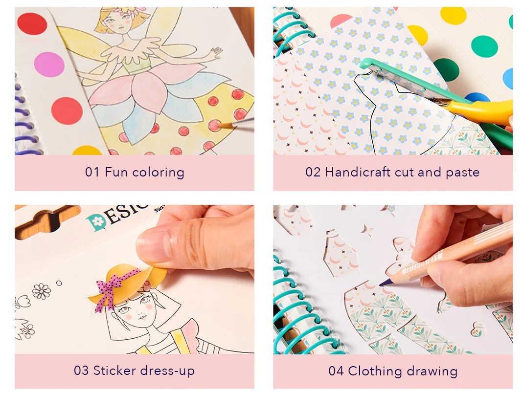 Раскраски, крафт, наклейки — все в одной книге. Всего 36 страниц в каждой книге серии «Маленький дизайнер». Настоящие тканевые материалы и полый картон дают больше возможностей для творческих идей. Легко отрывается и приклеивается самоклейкой. Это может помочь улучшить практические навыки детей, концентрацию, соответствие цветов и эстетику.